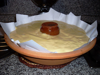 e fica dentro da forma tapada e o próprio calor da forma acaba por cozer o pão-de-ló.Receita que nunca falha.